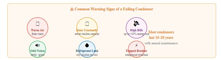 ক failing or dirty condenser directly degrades your air conditioning system's performance and efficiency. Watch for these warning signs: